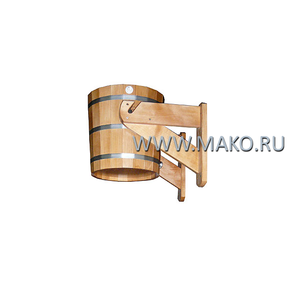 Ведро крепится к стене при помощи анкеров на высоте 2,1-2,4 м, при этом стена должна выдерживать нагрузку 50-60 кг. Ведро снабжено системой «поплавок», который своевременно перекрывает поступающий поток воды после очередного наполнения емкости.Ведро-водопад для бани – это разумное решение при ограниченных финансах либо недостатке площадей. В то же время тот дизайн, в котором выполняются сегодня эти устройства, позволяет говорить о стильном и современном приобретении для бани и сауны. Заведение не станет менее привлекательным для клиентов. Благородная древесина выглядит шикарно в любом банном интерьере. К тому же деревянные ведра, ушаты, лавки и полкu придают помещению особый колорит, ноты этноса и самобытности. Кстати, американские ученые выяснили, что полезен даже вопль, который обычно издает человек после того, как на него, разгоряченного жаром сауны или парной, опрокидывается ушат холодной воды.