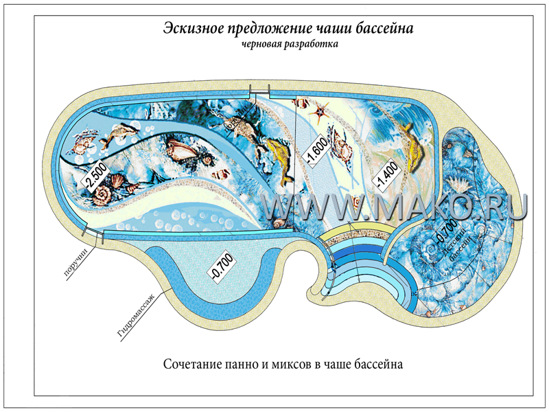 Вы мечтаете построить бассейн… В своем доме ли, на даче ли, а, возможно, Вы планируете открыть спортивный, оздоровительный или развлекательный центр с бассейном. В общем, думали-думали и – надумали! А с чего началась Ваша мечта, помните? Ну, конечно, с того, что Вы вообразили, представили, увидели во сне, как наяву, этот самый бассейн. «Он будет вот такого размера и вот такой формы, — думаете Вы, — ах, нет! Формы лучше такой… а размера – такого… А вода в нем будет голубой, нет, лучше зеленоватой. А плитка – с дельфинами, нет, лучше с Нептуном. Или с русалками? А вокруг – зеркала, зеркала… и цветы тропические. Так красиво будет кругом, и так счастливы будут все, кто придет в этот бассейн. Они непременно оценят такую красоту!». Вот так Вы мечтаете-мечтаете и – голова в круг, мысли путаются, одно видение сменяет другое, в конце концов, Ваши фантазии начинают Вас определенно доставать, и Вы не знаете, что делать. А, тем временем, выход прост – обратиться к дизайнеру. Стендаль когда-то сказал: «Красота есть лишь обещание счастья». Вероятнее всего, великий француз говорил о женщинах, но в данном случае этот афоризм тоже вполне уместен. Вы можете в своем воображении придумать красоту небывалую, супер-бассейн и супер-дизайн. Но, во-первых, реально ли все это будет претворить в жизнь, и, во-вторых, действительно ли красиво это будет?