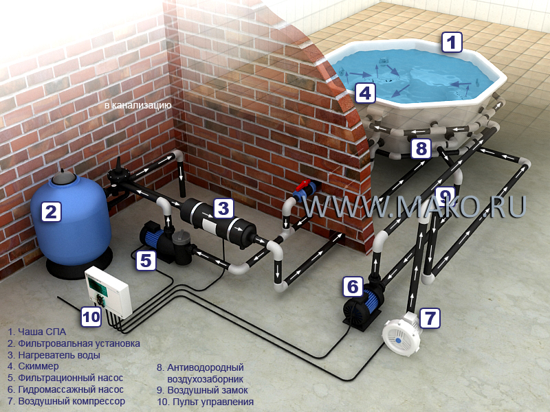 Снять усталость, улучшить настроение, придать тонус телу, позаботиться о внутреннем состоянии помогут гидромассажные бассейны СПА (SPA), которые в последние десятилетия пользуются неслыханной популярностью. Ни один современный человек, заботящейся о своем здоровье, не представляет и дня без водных процедур. Ведь ни что не оказывает на наше самочувствие такого благотворного эффекта как вода. Гидромассажный бассейн СПА (джакузи) в прямом смысле слова поможет Вам воспарить над реальностью. Принцип его работы покоится на трех китах: теплая вода, невесомость и массаж. Теплая вода избавит от усталости, невесомость, создаваемая мощными потоками воды, снимет давление с суставов и надолго подарит чувство легкости, а массаж исцелит каждую клеточку Вашего тела. Таким образом, стильный и привлекательный гидромассажный бассейн, установленный в доме, не только эстетически облагородит Ваше персональное пространство, но и окутает Вас аурой комфорта.