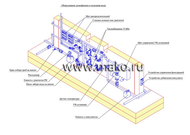 Любые способы обеззараживания воды предусматривают оборудование для дезинфекции, бассейн должен быть оснащен ими согласно СанПиНам, ГОСТам и другим регламентирующим документам. Это либо генераторы озона, либо УФ-обеззараживающие установки, либо ионизаторы, а также автоматические станции дозирования химикатов для автоматического измерения параметров воды и дозирования необходимого количества химреагентов.