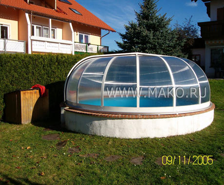Счастливым обладателям открытых круглых бассейнов не надо долго ломать голову над тем, какой павильон выбрать. Их выбор очевиден – «ARENA» от немецкой фирмы CAMPANA!