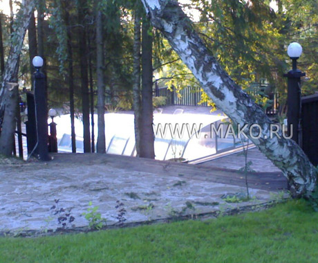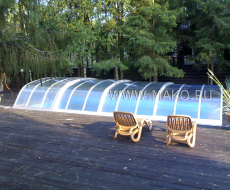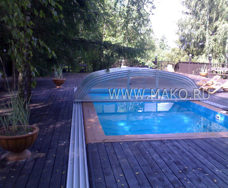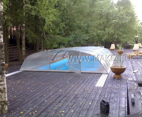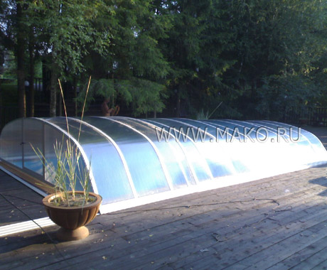 Павильон для бассейна «MINI MOBIL» имеет массу других преимуществ. Малая высота конструкции (от 0,6 до 1,1 м) не высится громадой над дачным (приусадебным) участком, напоминая надземный тоннель, и не ограничивает обзор. Стандартное исполнение «Мини Мобиль» представляет собой три отдельные секции, однако, если Вы – обладатель длинного бассейна, то можно смонтировать павильон из 4-х секций. Все подвижные элементы конструкции легко и свободно передвигаются по принципу роллерной системы. Никаких титанических усилий, простое нажатие руки и – мобильные части укрытия приходят в движение. Без скрежета и скрипа.