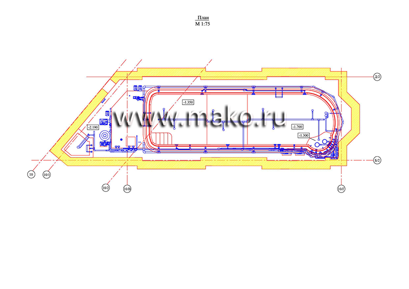 Типовой проект плавательного бассейна предполагает оформленную по нормам готовую разработку инженерных коммуникаций — тепло-, электро- и водоснабжения, а также монтажа и подсоединения систем вентиляции и канализации. Такой проект подразумевает наличие выполненных под нормативные условия технологических и других расчетов и содержит перечень минимально необходимого оборудования. Не забыты проектом и вспомогательные помещения, планировка которых зачастую предусматривает необходимый минимум площадей. Однако, типовой проект, в любом случае, требует переработки под индивидуальные условия участка застройки.