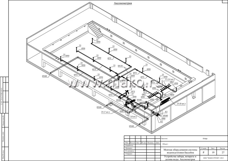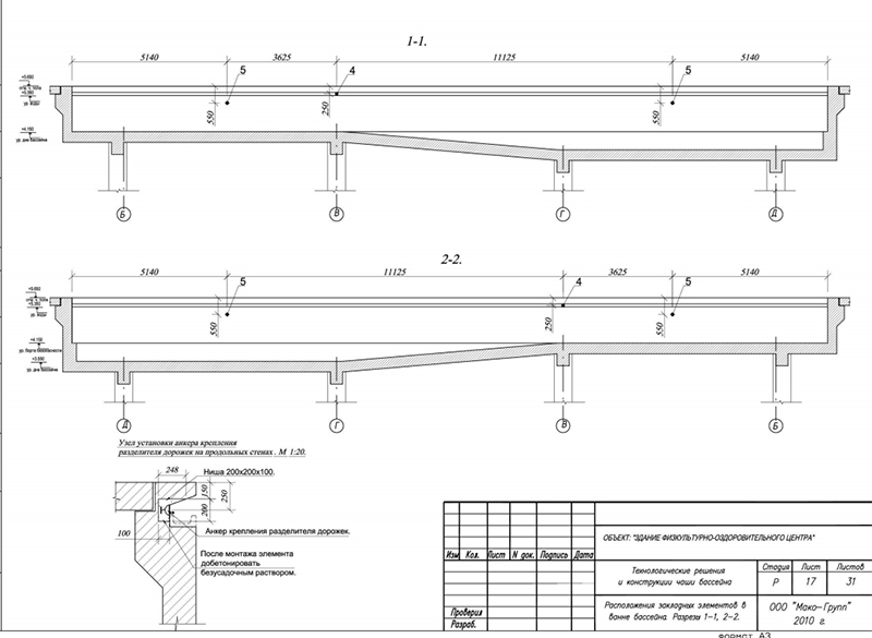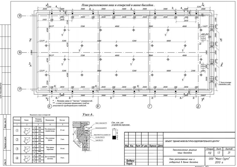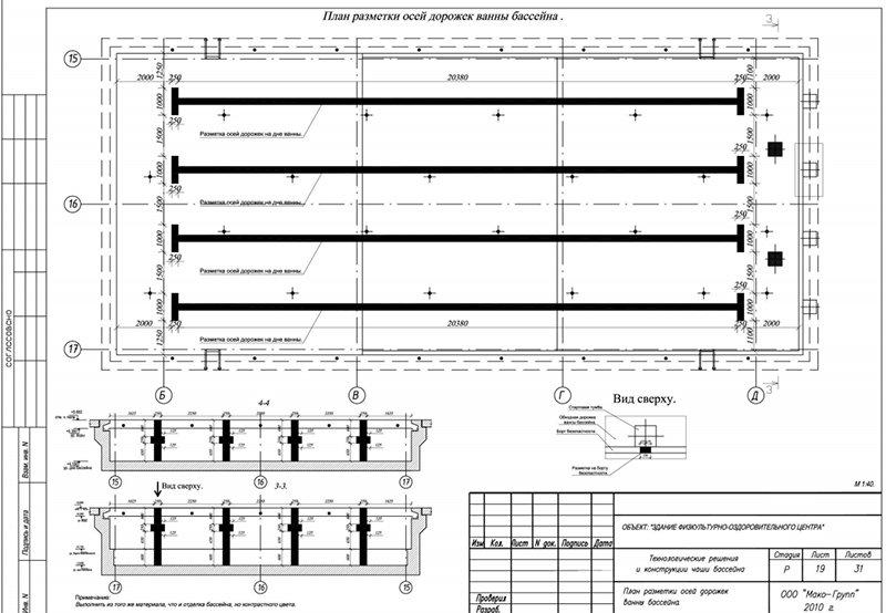 Однако если при строительстве небольшого частного бассейна в отдельных случаях можно не затевать разработку большого проекта и обойтись техническим заданием на изготовление чаши, то при возведении общественного бассейна, изначально рассчитанного на массовое пребывание людей, такой номер не пройдет. Хотя бы в целях все той же безопасности. Проекты общественных бассейнов составляются всегда и являются необходимым и обязательным этапом строительства.
