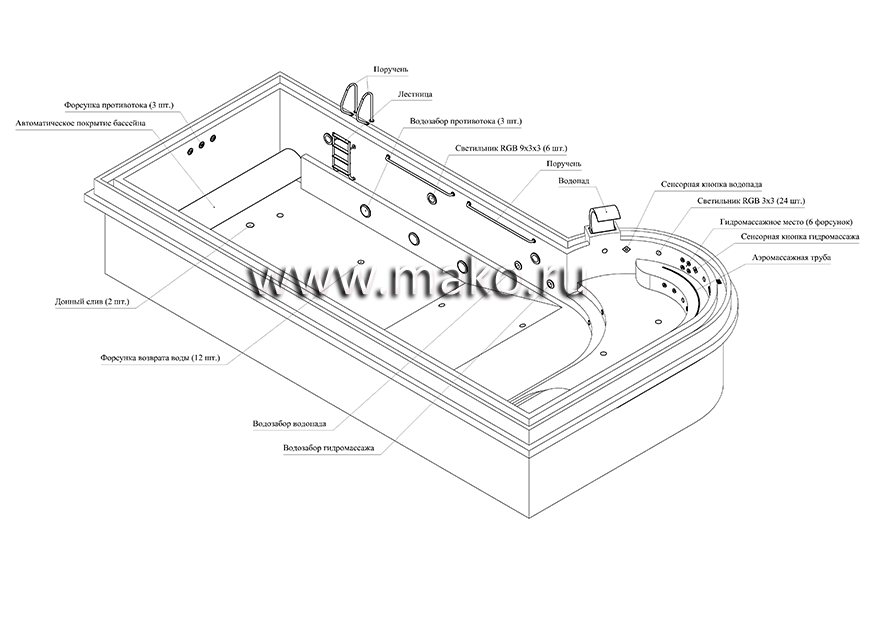 Для безопасного и комфортного использования водоема в течение длительного срока наши специалисты тщательно продумают, какое оборудование плавательного бассейна необходимо устанавливать в том или ином случае (учитывается, общественный это бассейн или частный, детский или спортивный, открытый или закрытый). Специалисты нашей компании подберут и установят комплект необходимого (а также, по желанию заказчика, развлекательного) оборудования для Вашего бассейна. Наши эксперты предложат Вам оборудование ведущих мировых производителей.