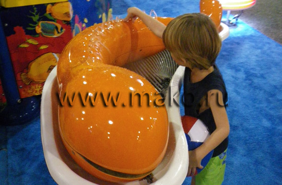 Горки, подъемы, спуски, волны, водопады, бурные реки… Все это здорово, но все это немножко утомляет и тогда на смену интерактивным и шумным аттракционам приходит AquaTune – уникальный музыкальный инструмент, на котором самозабвенно создают мелодии и взрослые, и дети. AquaTune по сути – тоже интерактивное явление, но это адреналин иного рода, он «работает» на успокоение, благодушие, умиротворение. Он завораживает, околдовывает, пленяет. Пред ним самые бойкие и активные пасуют и – очаровываются. AquaTune, казалось бы, не представляет собой ничего экстраординарного и, тем не менее, около этого аттракциона всегда толпятся люди: одни, чтобы самим испробовать себя в качестве органиста, скрипача или флейтиста, другие – чтобы понаблюдать за самодеятельными композиторами… Здесь никогда не бывает пусто! Конструктивно AquaTune – это «головастик», изготовленный из нержавейки (изогнутая трубка) или стекловолокна, который имеет 12 отверстий для воды, испускающих струйки в виде дуг. Если закрыть одно отверстие пальцем, инструмент издает ту или иную музыкальную ноту. Соответственно закрывая отверстия поочередно, можно добиться звучания прекрасной музыки. Если потренироваться, то можно получить звуки, похожие на игру органа, скрипки, гобоя или флейты. Это чрезвычайно занимательно! Обычно у AquaTune выстраивается очередь, а иные посетители могут часами стоять, словно околдованные, у этого удивительного музыкального инструмента, то слушая игру других, то самостоятельно извлекая волшебные звуки из «головастика». Базовая модель AquaTune содержит 12 музыкальных нот, которые составляют октаву.