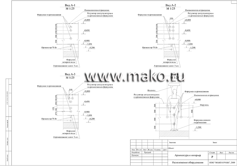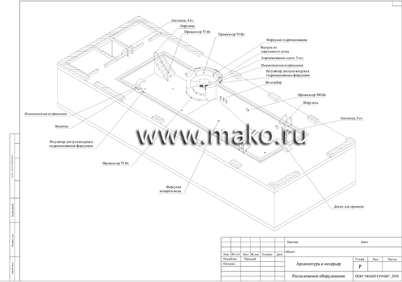 В бетонные бассейны можно установить дополнительное оборудование, которое сделает Ваш бассейн еще более привлекательным, комфортным и полезным. Это могут быть гидро- и аэромассажные установки, противоток, водопады, горки и т.д.