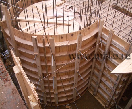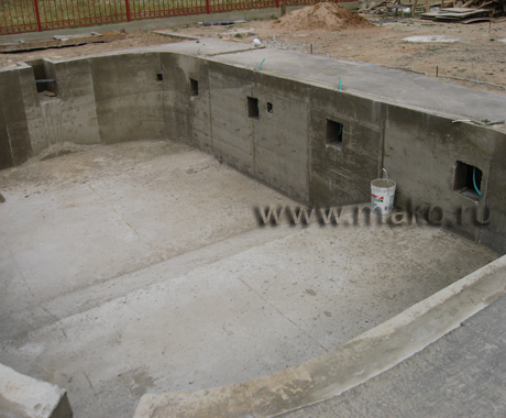 Строительство бетонной чаши бассейна – крайне важный этап. Заливка бетонной смесью дна и стенок чаши должна происходить, по возможности, непрерывно. При большом промежутке времени между заливкой дна и заливкой стенок применяют расширительный шнур. Специалисты говорят, что на нем экономить не стоит, поскольку его свойства помогают избежать «холодного шва» между слоями заливки бетонной смеси. Чаше бетонного бассейна необходимо «выстояться» не менее 28 дней. Заказчик должен это знать и не требовать ускорения темпов строительства. В противном случае он рискует получить некачественный бассейн.