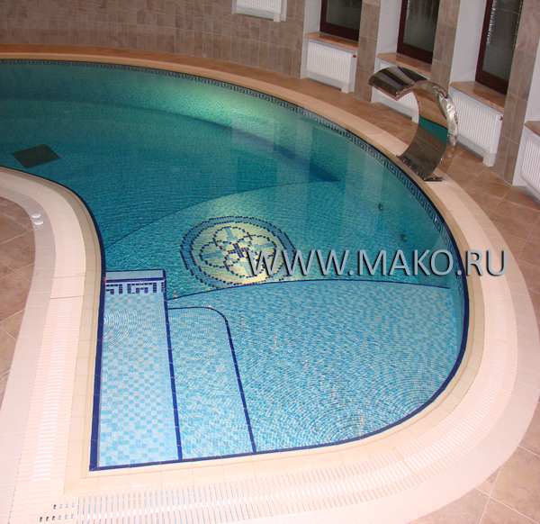 В некоторых случаях подающие форсунки располагают в стенках чаши бассейна, однако, по мнению специалистов, лучшую циркуляцию обеспечивает все же донное расположение, именно при этом варианте очищенная и подогретая вода попадает во все «уголки» чаши более равномерно. Особенно это ощущается в бассейнах сложной геометрической формы. Кстати, допустимо размещение переливного желоба (пенного корытца) не по всему периметру чаши, а только с одной стороны. Это допускается в случае ограниченности размеров помещения.