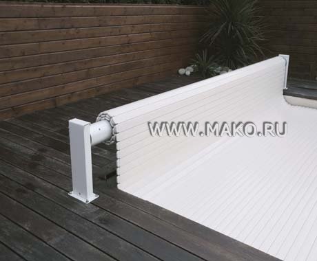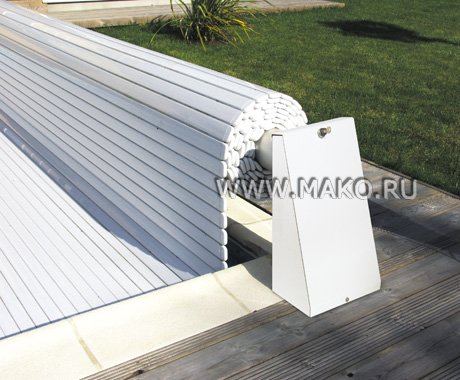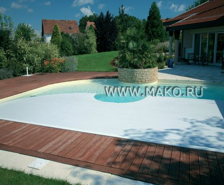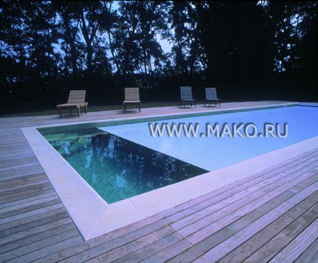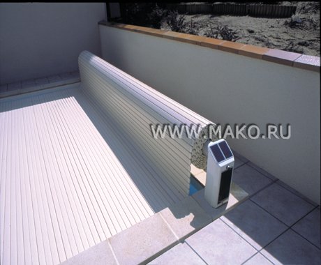 Всей конструкцией можно управлять с помощью пульта дистанционного управления. И даже эти несложные телодвижения с пультом сводятся к нулю! – устройством предусмотрен специальный таймер, который обеспечивает самостоятельную, автоматическую работу установки. Жалюзи для бассейна изготавливаются под индивидуальную форму бассейна, и имеют различные цветовые варианты.