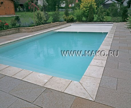 Покрытий, как известно, три: мягкое зимнее, плавающее пузырьковое и плавающие защитные жалюзи. Мягкое зимнее закрывает бассейн во некупальный сезон. Плавающее пузырьковое предотвращает попадание мусора, уменьшает испарение с поверхности воды и сохраняет тепло в воде. Жалюзи для бассейнов обеспечивают безопасность для детей и животных (выдерживают в динамике до 100 кг), максимально снижают испарение, берегут чистоту и тепло воды, придают бассейну особую эстетику. Естественное испарение – самая главная причина потери тепла в бассейне.