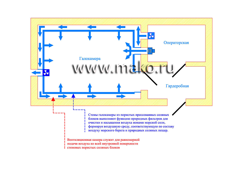 Сильвинит, которым облицована современная соляная комната, содержит соли натрия, магния, калия, брома, кальция и свыше 25 других включений. Солевые кристаллы состоят из спрессованных за миллионы лет мельчайших пузырьков воздуха – частиц климата палеозойской эры, который стимулировал развитие жизни на Земле. Все это вместе взятое и оказывает положительное воздействие на организм человека.
