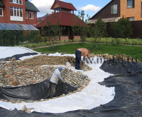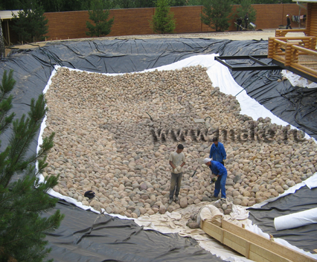 Наша компания работает только с современными гидроизоляционными материалами от надежных производителей. Так, мы используем бутилкаучук – так называемую жидкую резину. На сегодня это самый популярный гидроизолирующий материал, обеспечивающий непревзойденное качество гидроизоляции. Сквозь бутилкаучук не прорастают корни, он устойчив к УФ-лучам, перепадам температур, безвреден для растений и животных, долговечен (может эксплуатироваться несколько десятилетий без ремонта и замены). Впрочем, используемые нами другие виды гидроизоляционных материалов мало в чем уступают технологичному бутилкаучуку (например, стеклопластик для бетонных водоемов или ПВХ-пленка), они также надежны и обеспечивают качественную гидроизоляцию.